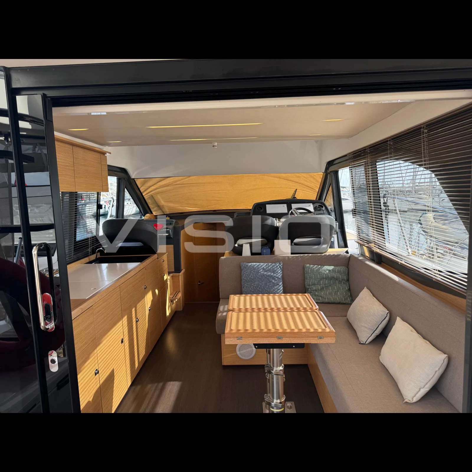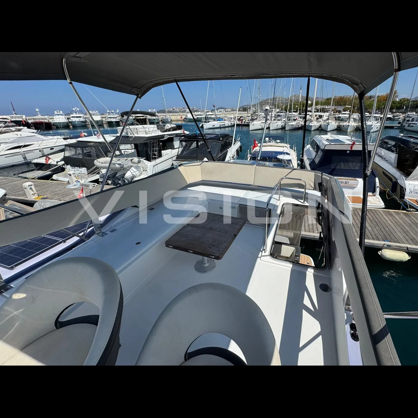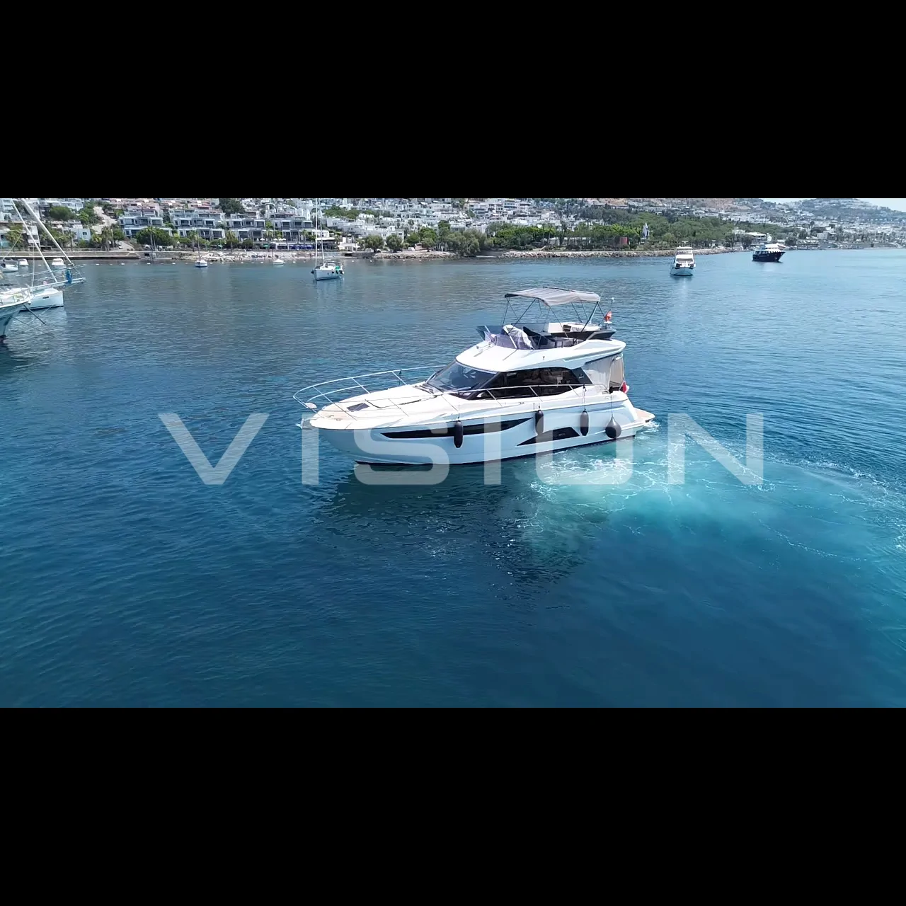 • Geniş Flybridge: Kendi sınıfının en iyi planlanmış flybridge alanlarından biri; ergonomik kaptan mahalli, güneşlenme alanı ve barbekü donanımı.