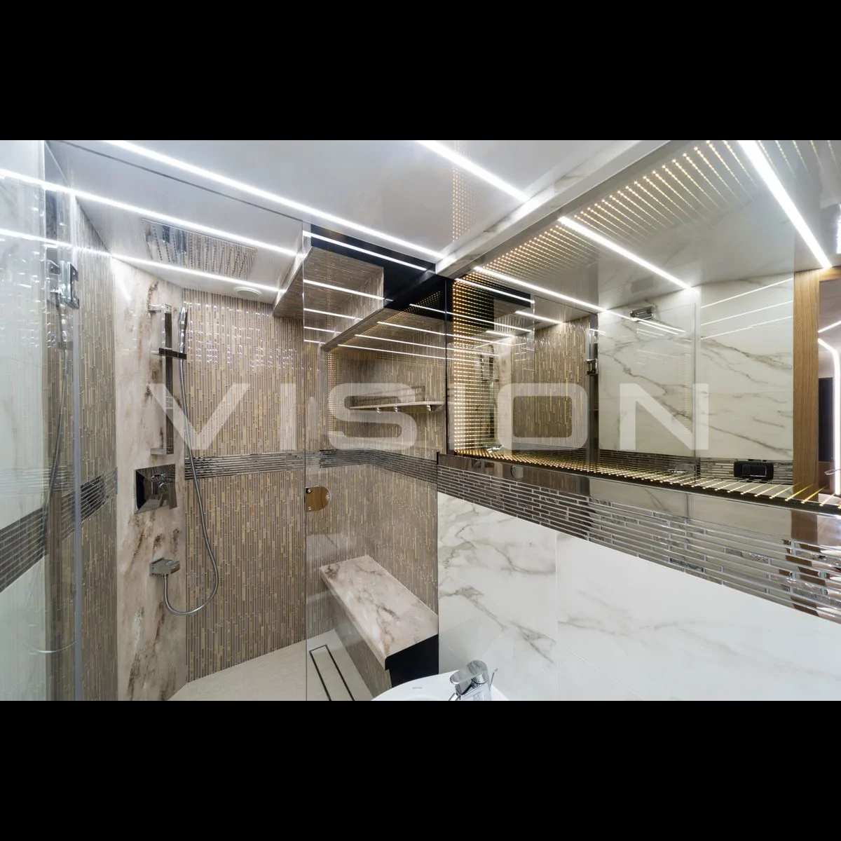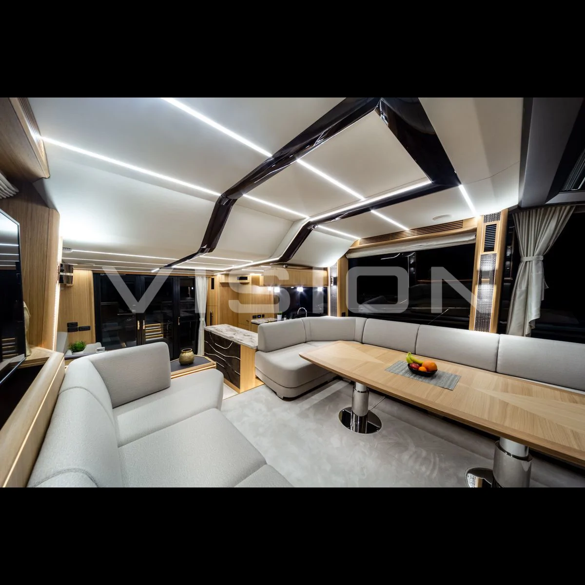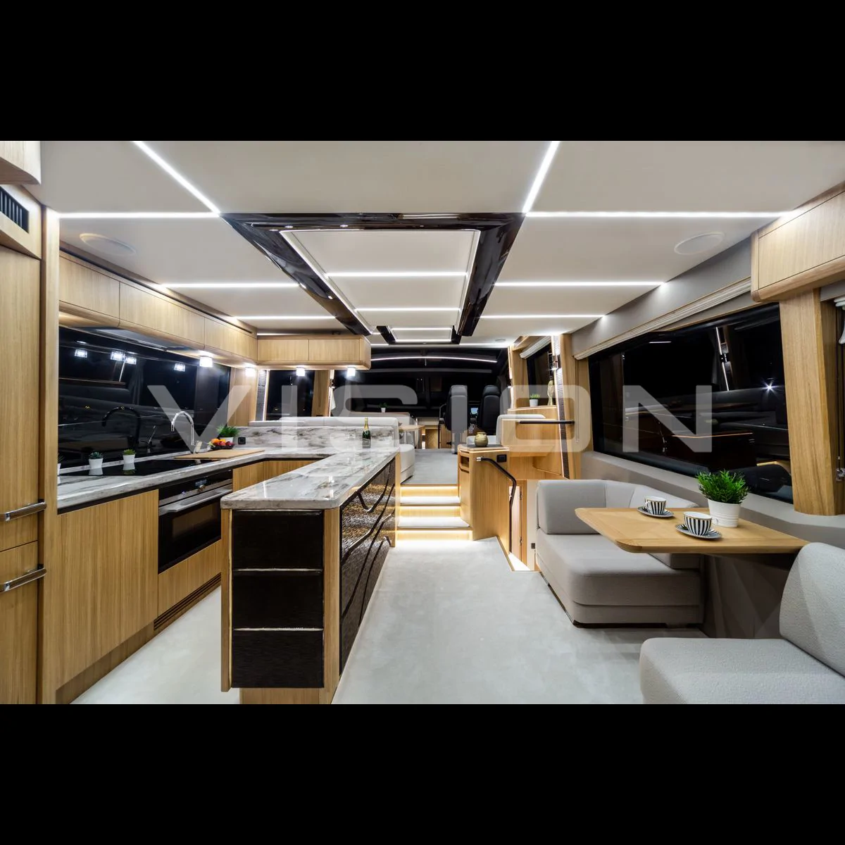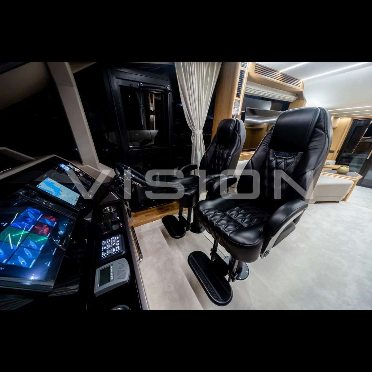 Geniş Flybridge: Kendi boyutundaki tekneler arasında en ferah flybridge alanlarından biri; geniş oturma grupları ve tam donanımlı bar ile sosyal bir merkez.