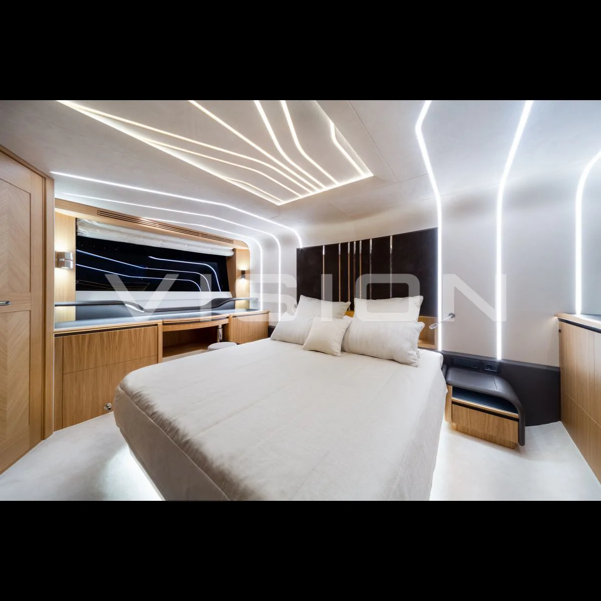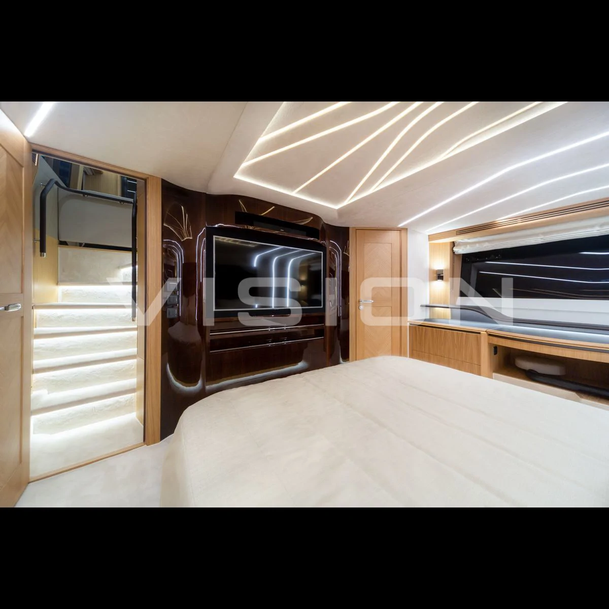 Yaşam Alanları ve Konfor Galeon 680 FLY, 4 lüks kabini ile geniş aileler ve misafir grupları için idealdir. Master kabin, teknenin tüm genişliğini kullanarak maksimum konfor sunar. Salon ve mutfak arasındaki akışkan geçişler, teknede yaşamı son derece kolaylaştırır.