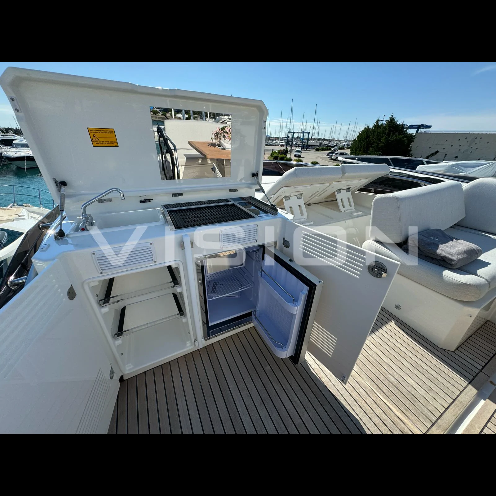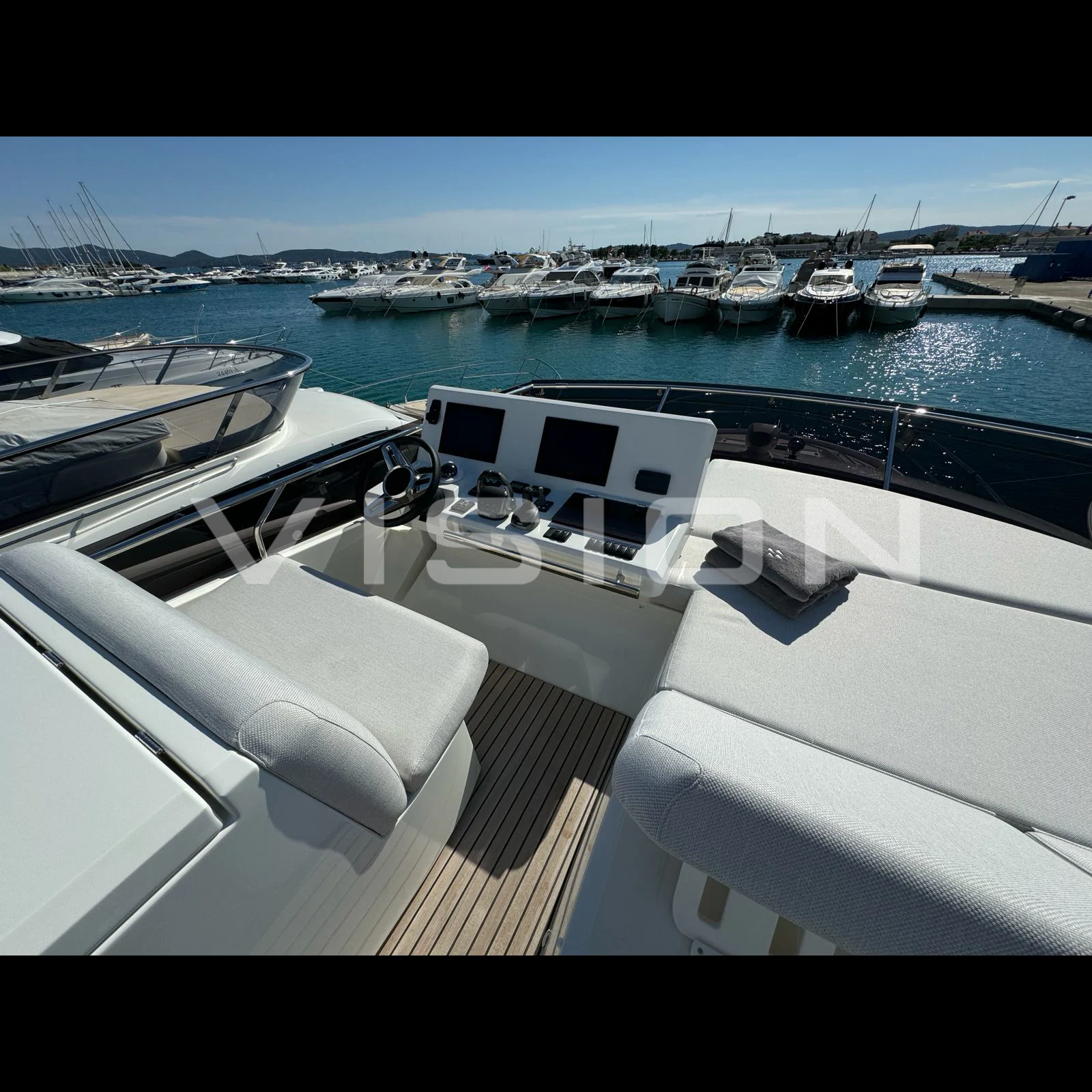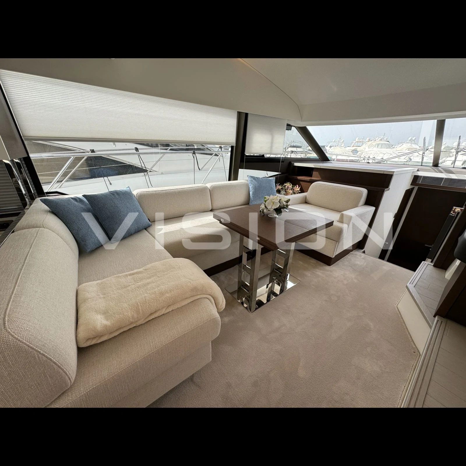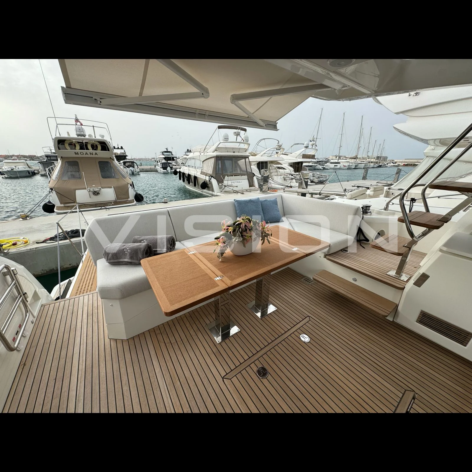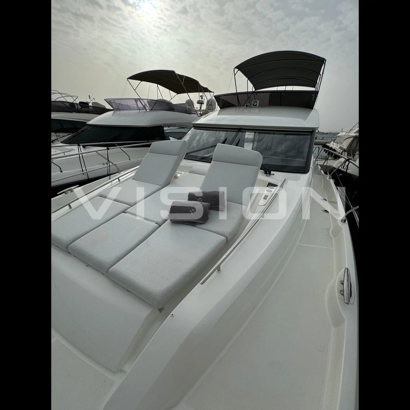 Yaşam Alanları ve Konfor Prestige 520 FLY, 3 kabinli yerleşimiyle misafirlerine rafine bir konaklama sunar. İç mekanda kullanılan yüksek kaliteli ahşap ve kumaş dokuları, markanın "denizdeki eviniz" felsefesini destekler. Kıç havuzluktaki geniş oturma grubu ve baş taraftaki ayarlanabilir güneşlenme minderleri, teknenin her noktasını bir keyif alanına dönüştürür.